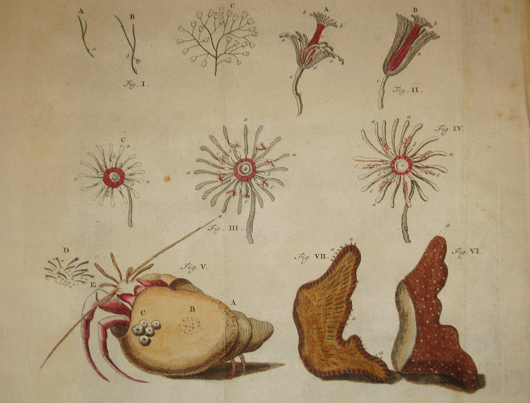 1 Carchesiun polypinum is a freshwater species. Bennet & van Olivier (1826, p.205) identified I a,b,c as Vorticella polypina, de veranderlijke bastaardpoliep 2 Vervoort (1946, p. 103) identified Tubularia larynx, name later changed to Ectopleura larynx. 3 Vervoort (1946, p. 99) 4 Vervoort (1946, p. 130) 5 Francis Kerckhof 6 Holthuis (1950, p. 133)