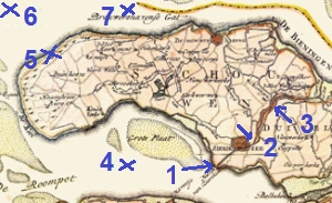 (2) on silt in the Dijkswater near Zierikzee and (3) at the verste Sas and (5) on the beach. Also he tells that specimens were brought to him by locals or fishermen who collected them (4) on the Oosterschelde or (6) on the North Sea.